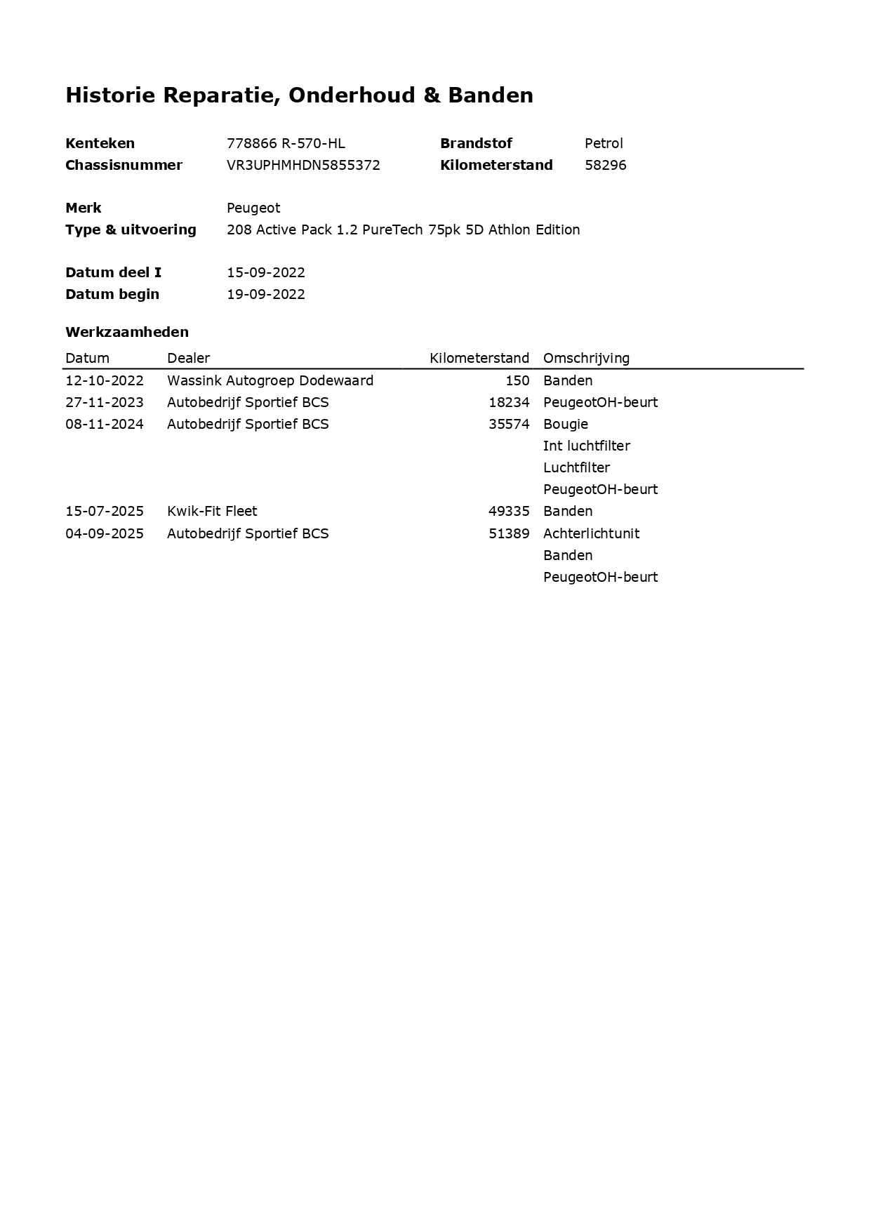 Onderhoud, historie en staat