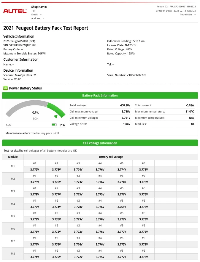 EV Active Pack 50 kWh SOH 92%